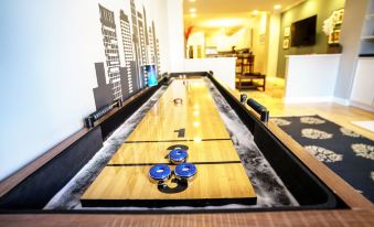 • Gameroom stocked with board games, poker chips, and a shuffleboard table