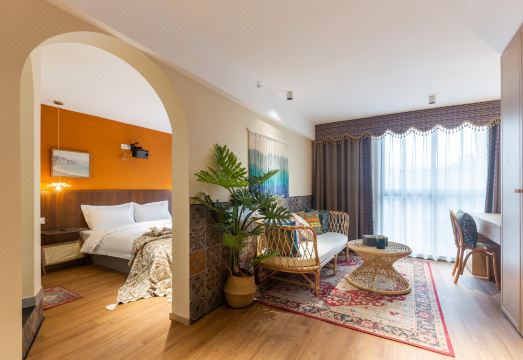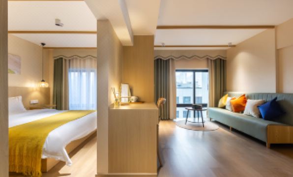 This is an AirBnB type place that emails you check-in details & WeChat contact info the day/evening before. Make sure to check your email for this as knowing exactly where to go in the building or how to get in the door is impossible without asking via WeChat. Once we were in contact via WeChat, the host was super responsive & helpful, including asking us each day if we wanted cleaning. Even though we didn’t, they always left a bag outside the door with additional waters, tea bags, & toiletries. Nothing special about the location, but there are convenience stores & restaurants in the complex and more options with a few minutes walk. It was about 10 minute walk to two different subway stations. The room itself was clean, decent size, had blackout curtains and the promised washer machine & decent though not spectacular city view, did not have a couch such as the picture suggested it would, though it did have a king size bed rather than the full size listed in the room description, which we requested in the room request section. The shower was huge and enclosed, unlike many you’ll find in China. There was also a flight of stairs up the the room, but no steps once you were inside. Overall, a nice, clean budget place to stay.