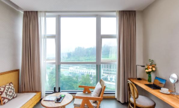 Meisu is a boutique urban homestay combining accommodation and a café. Here, you can enjoy perfect accommodation with in-room amenities such as smart curtains, large-screen LCD TVs (some rooms are equipped with large-screen projection devices), free drinks, high-speed WiFi, latex mattresses, etc. Meanwhile, you can savor mellow coffee and delicious bread. Whether gathering with friends to chat over tea while enjoying the view of the Wujiang River, or sitting alone to read and observe the world in peace, Muxi offers a unique experience. On one side, it faces an entire forest; on another, it overlooks the city's twinkling lights; and on the third, it commands a distant view of the flowing Wujiang River, embodying a sense of being both reclusive and part of the world. A leisurely and carefree life doesn't necessarily require retreating to forests or wilderness. A higher level of seclusion is to maintain inner peace and find tranquility in the hustle and bustle of the city, preserving a pure land in the heart. "The mountain has trees, and the trees have branches; I admire you, but you don't know." At this moment, please calm down and listen to Muxi's story. May everything live up to your expectations!