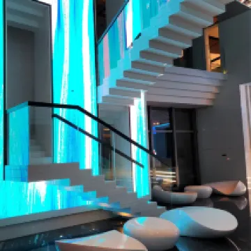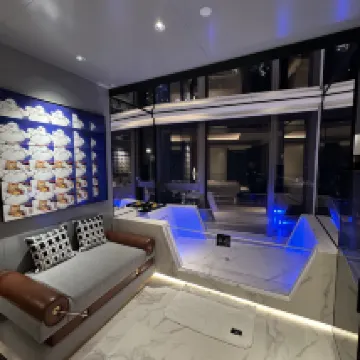 The loft was beautifully designed with double-height windows offering breathtaking views of the city and river. The layout felt modern and comfortable, with a cozy bedroom upstairs and a spacious living area below. Every detail was thoughtful, from the lighting to the finishes, and it had a calm, luxurious atmosphere that made it hard to leave.
