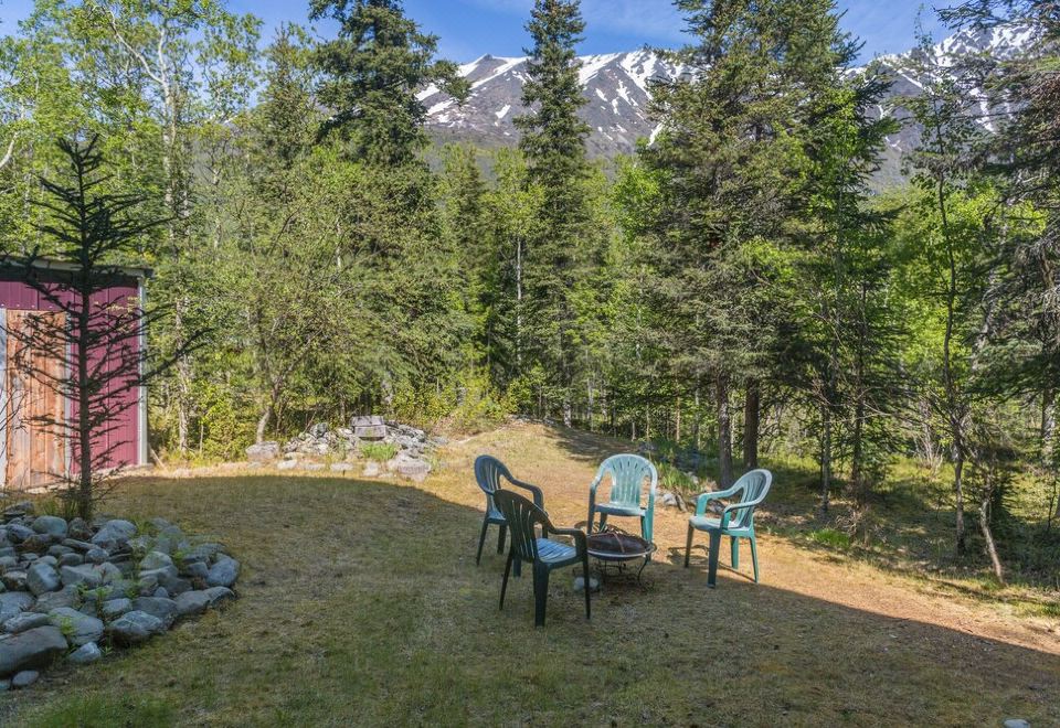 The lower deck has a swing, perfect for that evening drink, swaying to the sound of the breeze in the forest. The property is bordered by mature spruce forest, in a quiet residential area with the small-town vibe. Enjoy the sound and sights of the extra visitors and residents in the treetop bird houses on property. When wildfire danger is low, enjoy the firebowl out on the lawn.