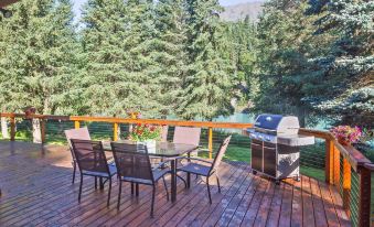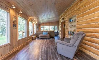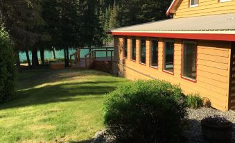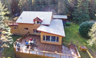 The house is located a five hundred yards upriver on the opposite bank from the Kenai Princess Wilderness Lodge, just upstream the Upper River rapids. The living set up is ideal for a romantic couple, a family of 6 or 4-5 friends. Moose, bear, bald eagles, beavers, goats and mountain sheep are commonly seen from the property. Outside there are plentiful wild raspberries in late summer, an outdoor sauna and wade fishing for Rainbows and Dollies.