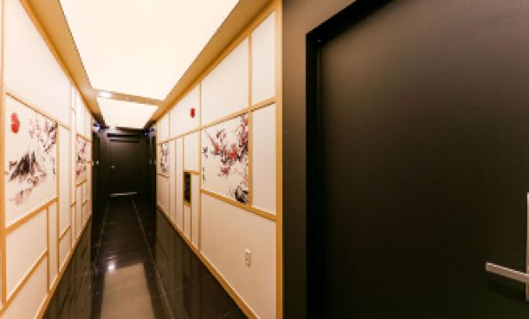 The room is Japanese-style, with kimono robes and wooden slippers. You sleep on a low platform rather than on the floor. There are no closets, but the room has four sections: a large bedroom, a large Asian-style shower/toilet with a wet floor (no shower stall, but with decent medium-sized tiles), a decent hallway with plenty of space for suitcases, and a small corridor for shoes at the entrance. Not all the lighting worked properly, and the condition of the walls, floors, and furniture wasn't shabby, but it showed signs of wear.