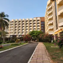 This was once a very high end hotel. There have been a few owners and management groups. My room was on the first floor and clearly recently renovated. It was clean, no bugs, decent toiletries, and usb ports, so able to charge my devices without worrying about plugs or adapters. I found the room very satisfactory. The conference facilities ere a bit of a labyrinth to get to and from via the hotel. Easier actually to go out doors and walk from the hotel to the conference area, if the heat doesn’t bother you. The hotel exterior could use some love and attention. You can walk from the pool and restaurant area out onto the beach and Atlantic Ocean. From the street side of the hotel you’re just a few blocks from “The American Grocery Store” and several embassies. From the driveway entry you are within eyesight of the American Embassy. Walking in the area during daylight I felt quite safe. The air pollution is quite bad though. To get a sense of the city you have to leave the hotel neighborhood. There were armed guards at the entrance, visible staff in most areas, etc. There is a tourist trap shopping area a bit past the embassy if you want to shop but don’t have the time or gumption to venture into the city. The only real problem that I ran into was trying to access local currency. I changed money at the airport, but needed more. The hotel has ATMs, neither of which (different banks) would honor my cash advance request. I went to two different banks, only to be told that they also did not exchange cash. Only one of the two had an ATM, and it too would not process my cash advance request. You can use credit cards in stores for larger purchases, but most smaller transactions are cash. Negotiate your taxi fare before you climb in.