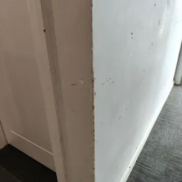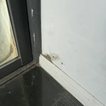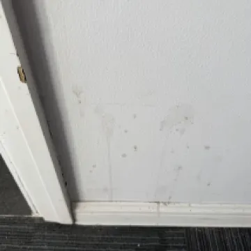 The bathroom had a musty smell and a lot of black stains. The toilet seat was also stained.