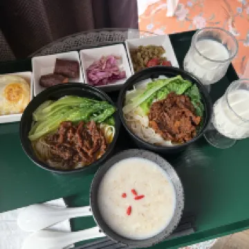 The owner is very attentive; the courtyard is filled with flowers and plants. Breakfast is freshly made Bai-style rice noodles, and the service is thoughtful and non-intrusive.
