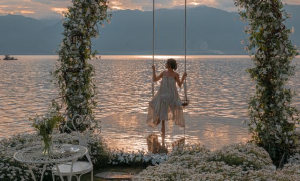 Stepping through the door, you're greeted by a blue and white building directly facing Erhai Lake. The must-try overwater swing is absolutely incredible; swaying over the sparkling waters of Erhai, you can even catch the Tyndall effect at sunset, with circling seagulls creating stunning, atmospheric shots 📸.