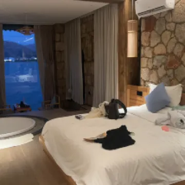 The room was very satisfactory, the most satisfactory one in this trip. The environment was very good and beautiful. There was a platform at the door of our room where we could watch the sunrise and the sea, and the facilities in the room were also very complete. The boss was very nice, because the road on the island was not easy to walk, the boss would pick us up and drop us off at the boarding point. The only drawback was that the power went out twice at night, but the boss solved it quickly. Overall, I was very satisfied.