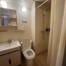 Well, it’s fine. I wouldn’t recommend this to most foreign travelers, but if you’re on a budget, it’s good. Also if you don’t care about other people’s hair everywhere. Found so much on the mattress and in the bathroom, short black hair that I don’t have. It could use a new paint job and the curtains (bathroom and window) both have seen better days. But for the price and the location it’s fine. Also the ‘towels’ they provide are only daily disposable ones wrapped in plastic, what a waste and bad for the environment.