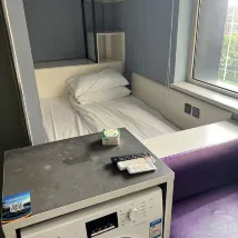 Practical bits: they provide two bottles of water daily and disposable paper towels (which actually came in handy given the humidity). The room also had a washing machine (bring your own detergent) and you can hang clothes outside on the 9th floor veranda. There's a bus stop right outside with direct services to Xian Lu (shopping and basement food market) and the Transport University area night market, the subway goes straight to the airport, and you're walking distance from the main tourist spots like Russian Street, the old tram etc. Plenty of restaurants nearby too. And two convenience stores on ground floor. This place accepts foreign tourists and check-in was quick and easy. Internet was fast but slower in the evenings.