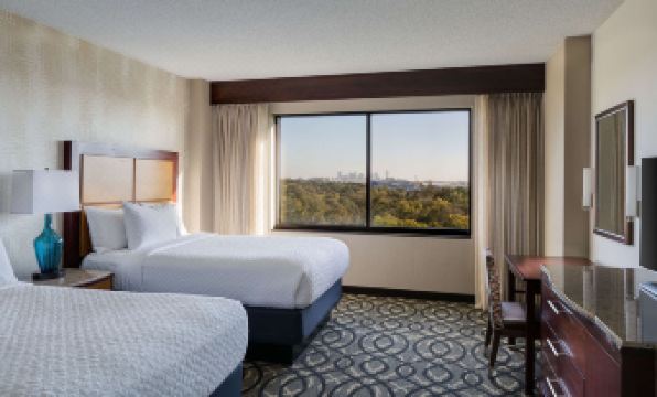 To stay in comfort on your exciting Dallas vacation, reserve full-service lodging at the Embassy Suites Dallas Love Field hotel, a premier option for downtown hotels in Dallas, Texas. Enjoy delightful views from this eight-story hotel overlooking a greenbelt and the magnificent downtown skyline. Lounge in spacious, two-room suites featuring a plentiful array of thoughtful amenities such as an ample work desk, refrigerator, coffee maker, and microwave. High-speed Internet access is also available for only $9.95 per day.