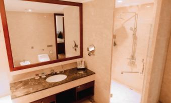 出差入住的酒店,酒店檔次挺高的,工作人員都很熱情,房間還送了飲料水和泡麪,需要換洗的衣服也會給你收走,洗好了給你送過來,挺不錯的酒店,下次還會繼續入住這個酒店