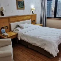 Several hotels share one building, and there's only one person at the front desk, so they're always swamped. The facilities are really old and outdated. For breakfast, they give you a 30-yuan voucher to use at a a tea restaurant.