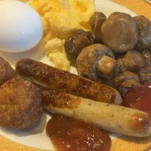 Das Frühstück war sehr abwechslungsreich und es war für jeden was dabei. Wir hatten eine Badewanne und eine Dusche und ganz viel Platz im Zimmer.
