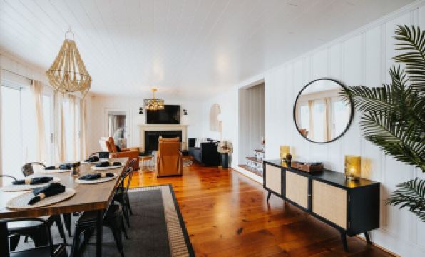 The home is a modern spin on a lakeside retreat. An abundance of natural light that floods the space and thoughtful necessities to make you feel right at home. Enjoy a day on the lake, bask in the light of the sunroom or cozy up next to the fireplace. Utilize the Keurig coffee maker, Kitchen Aid appliances and air fryer while listening to your favorite tunes on the record player or Sonos speakers.
