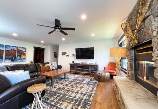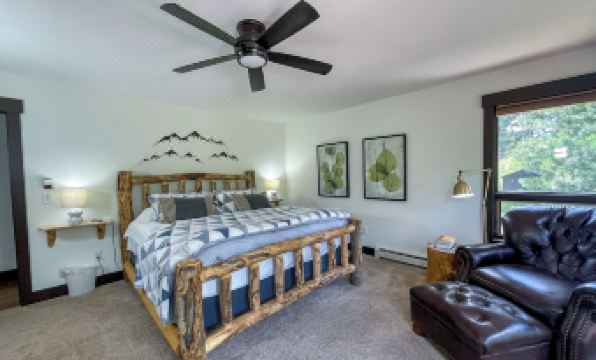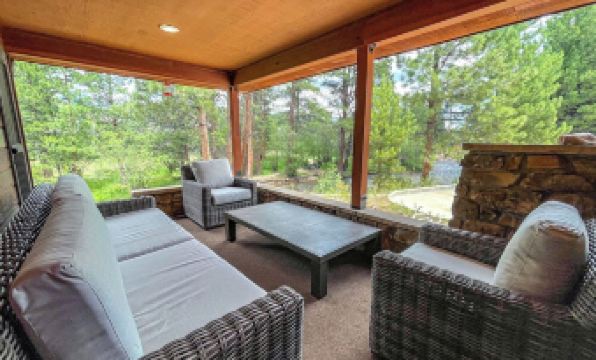 Situated on over 300 feet of the Big Thompson River, this completely remodeled home is the perfect place to call home while staying in Estes Park. There are very few homes in Estes that will give you such a peaceful setting with two outdoor spaces that overlook the river. This tranquil outdoor setting will make it hard to go indoors to enjoy the comforts of this beautiful home.