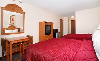 Stayed overnight during a long road trip. I walked into the room and was immediately hit with a strong smell of mold/mildew and the room was just very damp like a leaky basement. The carpet was very damp. The deadbolt for the door was coming apart. The tv remote also didn’t work so the tv was stuck on whatever channel it was already on and I couldn’t change it. The water tasted like mold when I brushed my teeth. I would not stay here again.