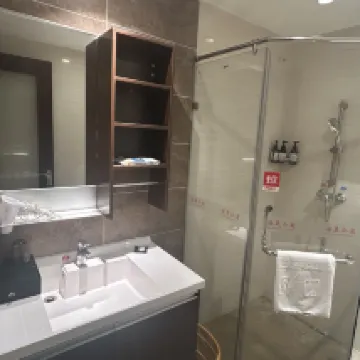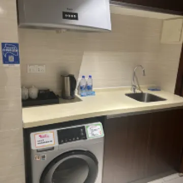 Great place to stop over. It has a small kitchen with a medium size fridge and a wash-dryer, which comes really convenient. It's spacious and clean. It's about 10 minutes walk you a shopping mall with many restaurants, a big supermarket and a few Chinese brand clothes shop, Tesla, and a few western brand clothes shop. The buffet breakfast is all Chinese food, a small variety but good enough and clean. We enjoyed the stay.