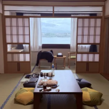The main reason I booked this hotel was for the stunning view of Mount Fuji right from my window once the curtains were drawn. When I arrived at Kawaguchiko Station, I told the staff at the tourist information center on the left which hotel I had booked. They called the hotel for me, and I was in the shuttle about 8 minutes later. A very helpful middle-aged woman at the hotel's front desk handled my check-in; she provided excellent service and explained everything thoroughly. The hotel has separate hot springs for men and women, located in two different buildings, which rotate in the morning and evening. I booked a plan with dinner and breakfast. The Japanese meals were exquisitely presented, though the taste was just average. After dinner, I returned to my room to find the futons already laid out. The service throughout my stay was incredibly attentive. There are many Japanese-style hotels around the lake, and this one offers good value for money. Recommended.