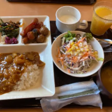 I stayed at this hotel for two weeks. Although the room was a bit small, every detail was thoughtfully taken care of. The front desk staff were very helpful and even used translation software to answer guests' questions. The hotel offers complimentary coffee and facial masks. The hot spring is open from 3 PM to midnight. Breakfast includes curry rice, grilled fish, tamagoyaki, and juice, among other options, all of which are well-balanced and tasty.