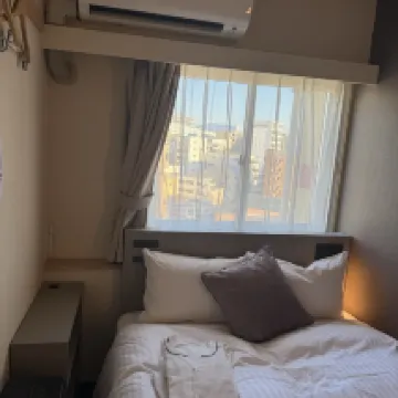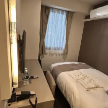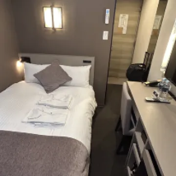 Like most Japanese hotels, it's impossible to open two small suitcases and one large suitcase simultaneously. The room size is very cramped, and the air conditioning is unstable – either freezing cold or scorching hot. It's 700 meters from the JR station, which is a reasonable distance.
