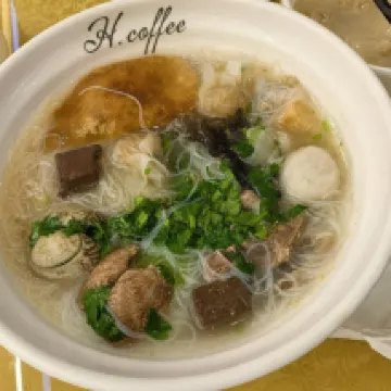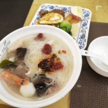 The breakfast was plentiful and offered local specialties. The picture shows a bowl of 'Laohua' (a Fuzhou noodle soup) with 'Rouyan' (Fuzhou swallow dumplings), which made it doubly delightful. The hallway smelled wonderful from the smoked tea stems, creating a very pleasant atmosphere throughout.