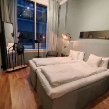 This hotel is in a great location, just a few minutes away from the shopping centre and tram/coach station. I stayed in the family room for 1 night, it was quite cosy for just the night, but it would be small if we planned to stay for longer. The hotel breakfast was very busy and offered a good selection of food. The bed was nice and soft, and I had the best sleep. I even took the covers off to look at the mattress brand. The negative was that there were no complimentary amenities in the room like tea bags, toothbrush, toothpaste or shower cap. But overall, the hotel is extremely modern, and I love the aesthetic. I will most likely be back when I'm in Gothenburg again.