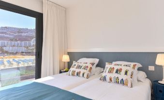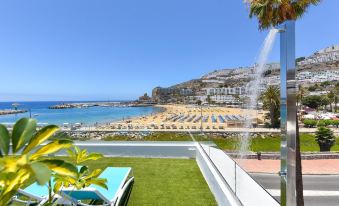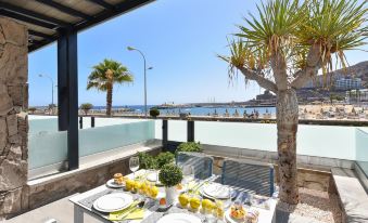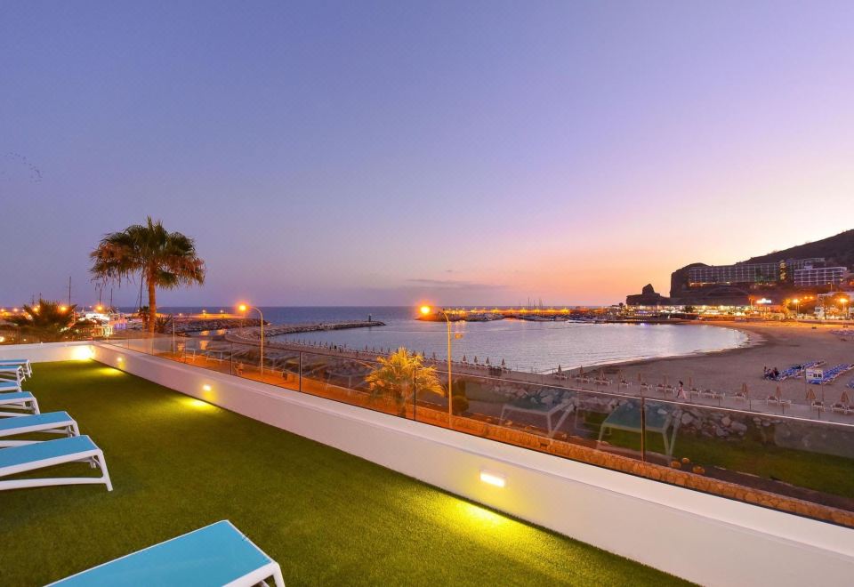 Modern, beautiful apartment block "BeachFront Morea 3 Puerto Rico". In the centre of Puerto Rico, in a central, busy, sunny position, 20 m from the sea, 20 m from the beach. Parking at the house. Bus stop "Escuela de Vela" 600 m. The owner does not accept any youth groups. Neighbourhood highly sensitive to noise. Quietness and good behaviour expected. Please be advised that a tourist tax will be applied to all stays in the municipality of Mogán. Effective from March 11, 2025, the tax rate is €0.15 per person, per night and will be added to your total stay cost. "Morea 3", 3-room apartment 90 m2 on 2 levels. Comfortable and modern furnishings: living room with satellite TV, digital TV and air conditioning. Exit to the terrace. Open kitchen (oven, dishwasher, 4 ceramic glass hob hotplates, toaster, kettle, microwave, freezer, electric coffee machine) with dining table. Sep. WC. Upper floor: 1 room with 1 french bed and air conditioning. Exit to the balcony. 1 room with 2 beds and air conditioning. Exit to the balcony. Shower/WC. 2 balconies, terrace. Terrace furniture, balcony furniture. View of the sea and the countryside. Facilities: washing machine, iron, baby cot for up to 2 year olds, hair dryer. Internet (WiFi, free). Parking (1 car). Please note: non-smokers only. 2024-T27874