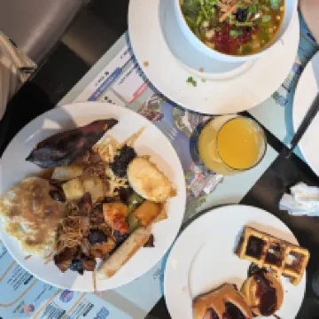 4. Breakfast was decent. The freshly squeezed juice was delicious, but the only meat option was hot dogs, and beef brisket with radish stew barely counts since there was so little beef. They only had bread-based pastries, no cakes. For fruit, it was just watermelon, guava, and dates. A minor disappointment, I'd say.