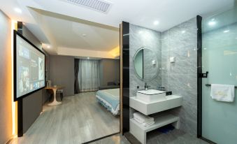 HD Movie Viewing Double Bed Room With Panoramic Floor-to-Ceiling Window And Projection