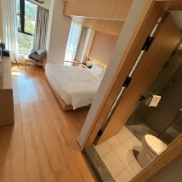 The room was decent, and the view was beautiful. When I first checked in, I noticed the soundproofing wasn't great and the bedding had already been used. I asked the front desk to change rooms and they upgraded me to a larger room for an extra fee, which solved the problem. It was nice to have both soft and firm pillow options. The cleanliness was also excellent. This hotel is a good choice for family trips.