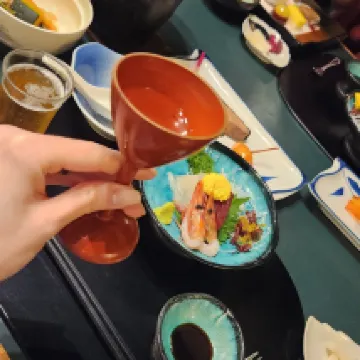 We booked a hot spring hotel on short notice and were very satisfied with it. We arrived early and could not check in until after 3:30 pm, but fortunately we could leave our luggage at the hotel. The staff helped us make the bed when we were having dinner in the evening. There was a rich variety of dinner, but we didn’t really like the side dishes. It would have been better if the side dishes were replaced with sashimi. We even had a surprise dessert after the meal, which made us very happy. The breakfast the next day was also very filling and delicious. The experience is very good and recommended for staying.