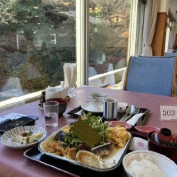 This is a Showa-era style ryokan. There's a bus stop right outside, but no shops nearby. Unless you book meals at the hotel in advance, you'll need to travel a few stops to find food. Breakfast was decent. However, the facilities are old and not very well-maintained, especially the hot springs, which weren't clean at all and quite dirty.