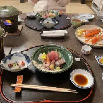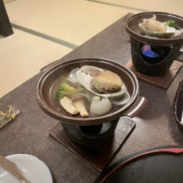 We booked for breakfast and dinner. However, dinner was from 6:00 to 8:00, and we weren't allowed to eat after 7:30. We arrived at 7:25, and the owner said the old man was waiting for us at the door, so we took our luggage and went to dinner. Although the two-hour meal was rushed through in half an hour, I was very grateful for the service. Families booking dinner should keep an eye on the time. The hot springs were in one room for 40 minutes. Although small, they were still quite nice.