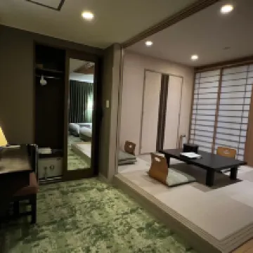 What we liked: - The decor in the reception area with its big fireplace feels very welcoming and cosy and reminded me a bit of a British hunting lodge. Very stylish. We loved it! - Very nice terrace with torch light in the evening. Great atmosphere. - We also liked the glamping area in the forest next door, with its pub. - The room was quite spacious and very clean. - Very friendly staff, providing excellent service! What we didn't like so much: - It's a shame that the only two dinner options available are either buffet-style at the restaurant or barbecue in the glamping area. It would be nice to be able to have a served meal on the restaurant terrace, but unfortunately only buffet dinner is available. - So we opted for the barbecue, which was great - except for the fact that between the salad and the barbecue, we were served cheese fondue. Apart from the fact that summer doesn't quite feel like the right season for a fondue, it was very filling, so that we - sadly - had to leave behind quite a bit of the excellent meat and vegetables, as our stomachs were already quite full. My suggestion to the hotel management would be to skip the fondue (and reduce the price accordingly). Or at least add it as an option for those who really want it. That said, the local beef was fantastic, and we also liked the presentation. - Breakfast was a bit of a let-down for me as a Westerner. Only the standard choices of bread you find in most Japanese hotels (tiny soft croissants, soft rolls and toast). It would be great if some Swiss/German-style rustic bread choices were available as an alternative for those who don't like a Japanese breakfast. Also, the coffee (served from one of those big containers) was very disappointing. For an establishment like this, I would have expected an espresso machine, offering guests different kinds of coffee (cappuccino, cafe au lait, espresso), which should be seen as the general standard nowadays. - We didn't quite understand why the glamping area as well as the bar were only open until 9pm - in the middle of the summer holiday season! With no other places within walking distance (as far as we were aware), that very much limited our options for after-dinner drinks. There was live piano entertainment in the bar area near the reception, but it stopped at 9pm sharp, just as we were coming back from dinner in the glamping area. Such a shame! - While the room was OK (spacious, functional and clean), there is one thing that annoyed us: The step to get into the bathroom. I almost stumbled on two occasions when getting out of the bathroom, because I didn't expect a step to be there. I think it could potentially be quite dangerous. If there were a light at the bottom of the step, that would at least make it a bit safer. Overall a very nice stay, even though it was (unfortunately) only for one night.