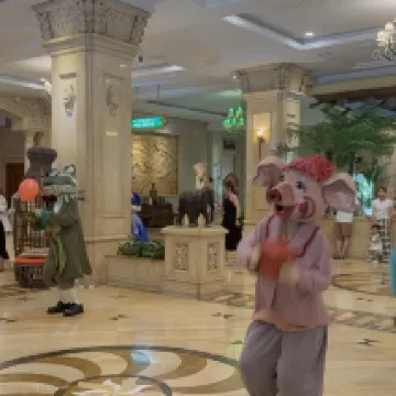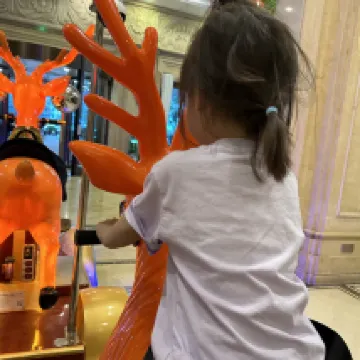 The amenities and services are comprehensive: We booked for four days and three nights, and both Rotten Apple and Hangzhou Paradise offered unlimited entry for all four days, with face recognition making it super convenient. The hotel's front and back entrances are actually very close, just a few minutes' walk, but the deer-shaped carts add endless fun to this short journey. Both kids in our family took turns riding them every day, which they loved. The buffet breakfast included in the room rate was decent, and the buffet dinner at 148 RMB per person was quite good value for money. While the variety wasn't extensive, the quality of the steak and the freshness of the salmon sashimi were excellent. The desserts, cakes, and ice cream were also delicious. It's perfect for families like ours who prefer to stay at the hotel and not venture out, haha. Although it's an older hotel, it's particularly well-suited for family trips. In the mornings, there are performances and interactions for children, and they even have their own small indoor play area (with excellent air conditioning).