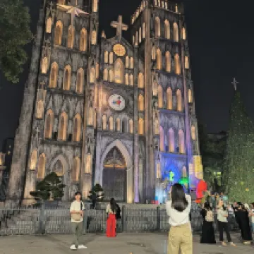 The hotel might not look big from the outside, but it's surprisingly spacious and full of character within. Its location is absolutely fantastic, right by Hoan Kiem Lake and not far from St. Joseph's Cathedral. The area around it is packed with street food vendors and massage parlors. The rooms aren't huge, but they are incredibly clean and have a charming, antique feel. The staff were all wonderful. We arrived late at night, and as soon as we pulled up, a bellhop came out to help us with our luggage and offered us refreshing drinks and snacks – so thoughtful! What impressed me most was the breakfast on the top floor; everything was delicious, whether it was the pho, spring rolls, or pastries. When we checked out, our car was a short walk away, and a staff member rushed ahead to help us load our bags into the vehicle. It was a truly perfect stay. Highly recommend it – you won't be disappointed!