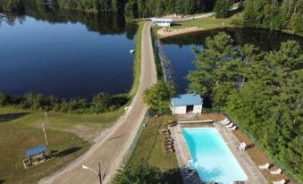 Also, the neighboring cabin is in relatively close proximity. Lake access from the property is limited to kayaks/canoes. Swimming is available on both lakes at the rec center.***