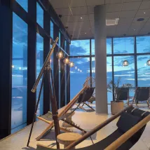 The hotel is located on the side of the harbor, with super beautiful scenery, especially a sauna room with a 270-degree sea view on the 12th floor, plus a bar on the roof! very beautiful! I booked a room for four, which had bunk beds. The kids loved it!