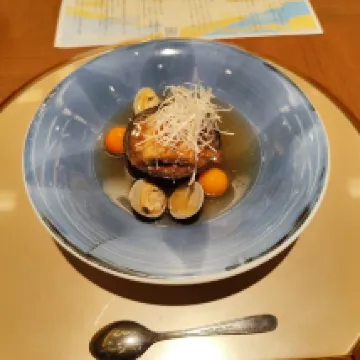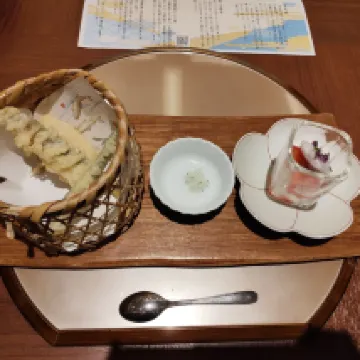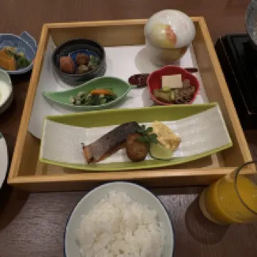 It's a really nice place. There were many thoughtful touches, and the drink bar service in the lobby upon arrival was a great way to relax. I liked the modern and stylish bathroom in the room, as shown in the photo. I also liked that the shower booster and toilet were separate. The lighting in the bathroom was dim, making it difficult to apply makeup. The room only had a shower booster, so if you wanted to soak in a bathtub, you'd have to go to the large public bath. Breakfast was a set meal, not a buffet. Each dish was carefully prepared and delicious. The milk-based vegetable soup with soba noodles was especially excellent.