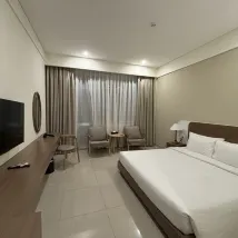 The room is relatively large and close to the airport. There are relatively few restaurants nearby and the shopping center is also quite far away, so you need to take a taxi to go out. Overall, I am quite satisfied with it and it is very cost-effective.