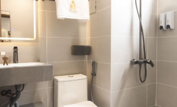The air conditioning and Wi-Fi both worked well, and Netflix was available and functioned properly. However, the bathroom design was awkward—the door was difficult to open fully because a towel rack was installed directly behind it. Water pressure on the fourth floor was extremely weak, almost non-existent. Also, there is no elevator, so carrying large or heavy luggage up several flights of stairs can be challenging.