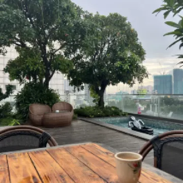 The hotel has very beautiful decor and is very clean with excellent service from friendly and helpful staff. The location is very convenient in District 1. Because it’s the centre of a busy city, you might hear street noises pretty early in the morning but nothing too offensive. The breakfast has lots of options but if you’re looking to try very good Vietnamese food, I’d go to some restaurants nearby. However the breakfast was very convenient and provided a good mix of western and Asian options including freshly cooked eggs or noodles. The small pools upstairs were a pleasant way to get some sunlight and water each morning. The bathroom facilities were very good including Japanese style toilet and luxurious soaps.