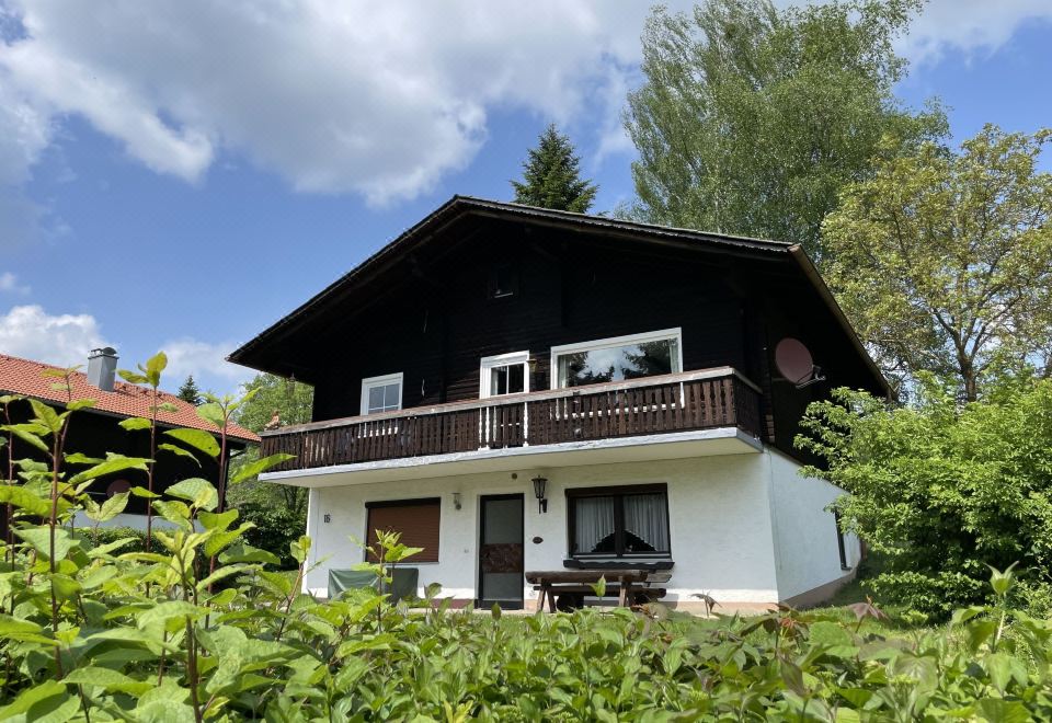 Child friendly holiday village "Am Hohen Bogen". In the district of Kummersdorf, outside the resort, 3 km from the centre of Arrach, on a slope, traffic calmed area, 300 m from the edge of the forest, 100 m from the lake, 9 km from the skiing area. For shared use: volleyball, children's playground (slide, swing, sandbox). In the complex: table tennis (extra). Central heating system. Parking at the house. Shop 3 km, grocery 3 km, supermarket 3 km, restaurant 3 km, bakery 3 km, bus stop "Großmühle Abzw. Hohenwarth" 650 m, railway station "Hohenwarth" 1.5 km, grass beach "Seepark Arrach" 5 km, outdoor swimming pool 10 km, thermal baths 10 km, bathing lake "Seepark Arrach" 5 km. Golf course (9 hole) 6 km, tennis 6 km, riding stable 800 m, chair lift 9 km, skisport facilities 9 km, slopes 9 km, ski rental 11 km, ski school 9 km, cross country ski track 11 km. Nearby attractions: Bayerwald-Tierpark Lohberg 15 km, Spielbank Bad Kötzting, Fun-Park Neukirchen, Tiergarten Straubing, Pullman-City. Well-known ski regions can easily be reached: Eck 6 km, Am Hohen Bogen 9 km, Arber 29 km. Hiking paths: Arberregion. Please note: car recommended. Groups of teenagers on request only. Boating, fishing 500 m. The holiday village consists of an apartment house and two-storey holiday houses with shared lawns and play areas. The distance from the individual houses to the natural swimming lake is 50 – 400 m. 2-room apartment 38 m2, on the ground floor. Cosy furnishings: living/sleeping room 18 m2 with 1 sofabed (160 cm, length 200 cm), dining table and satellite TV (flat screen). 1 room 12 m2 with 1 double bed (160 cm, length 200 cm). Kitchenette (2 ceramic glass hob hotplates, toaster, kettle, electric coffee machine). Shower/WC. Gas heating. Small terrace 8 m2 partly roofed. Terrace furniture, barbecue (portable). Beautiful view of the lake and the mountains. Facilities: iron. Please note: non-smokers only. Maximum 1 pet/ dog allowed. Smoke alarm. Allergy mattresses in the bedroom. Lake 150 m.