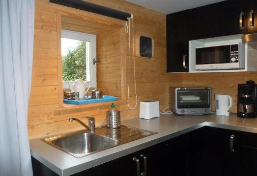 The kitchen is equipped with a refrigerator, stove, oven and microwave. A coffee machine, electric kettle and toaster are also provided.