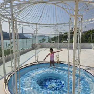 Highly recommended for families esp. with kids. Resto downstairs, pool, kids playground. And also free shuttle back and forth going to Tsuen Wan West Station (mall, market, and all) I love our family room.