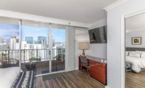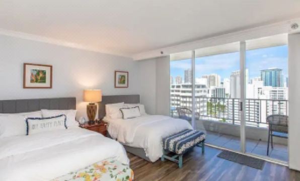 Over 1,200+ square feet to relax in a 2 bedroom/2 bath condo with floor to ceiling views of the beach, Waikiki, and the mountains. Nestled on a quiet street with a ~10 minute walk to the beach and Waikiki attractions.
