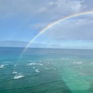 The hotel's location is absolutely fantastic, right on Waikiki's main shopping street, making dining and shopping incredibly convenient. We had a bit of a wait during check-in, but it was worth it as we ended up with an ocean-view room on the top floor. The views were expansive and the ocean scenery was absolutely stunning! Even more surprisingly, when I woke up the next morning and opened the window, I saw a rainbow – very lucky indeed!