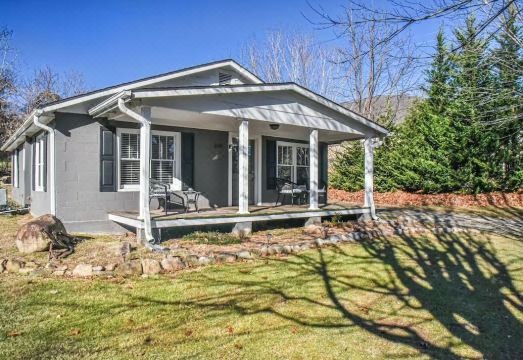 Our Cottage is in the city limits of Hot Springs and 1 mile to the main part of town. It is perched on a bluff overlooking the French Broad River Valley. The interior furnishings are cozy and comfortable with central HVAC and a gas fireplace with a remote. Large spa/hot tub, come soak under the stars! 3 1/2 miles down River Rd. is National Forest land with a park on the French Broad with 2 fishing piers, pic-nic and grilling area and pavilion. Our home is well stocked for your comfort with comfortable beds, nice linens, TV, Wi-Fi, a gas fireplace, charcoal grill, and a lovely porch to sit and take in the view. Roast marshmallows around the fire pit. It's located in a perfect spot that close to the center of Hot Springs, but far enough away to enjoy getting back to nature.