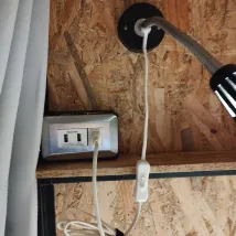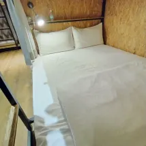 My bed was a double and spacious, but there was only one power outlet, so I couldn't use the bed lamp and adapter at the same time.